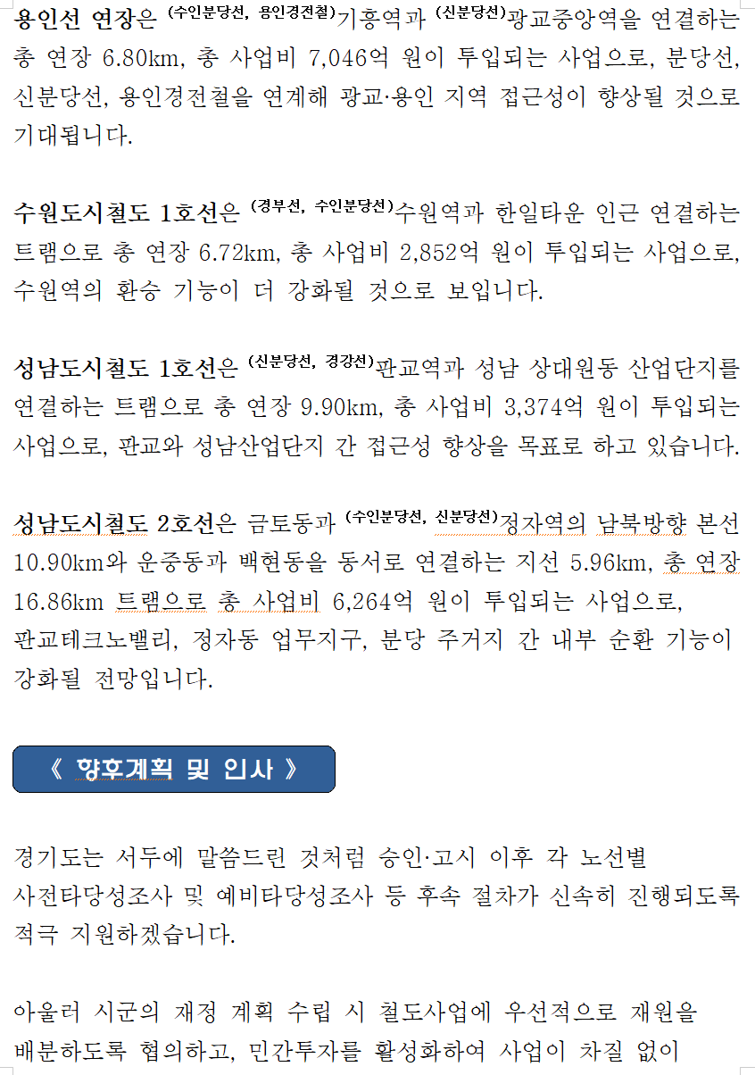 ‘판교~오포 도시철도’ 신속한 추진 강조는