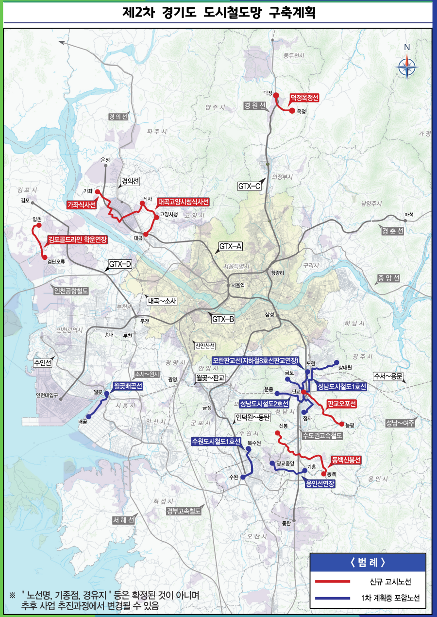 - 제2차 경기도 도시철도망 구축계획 노선도