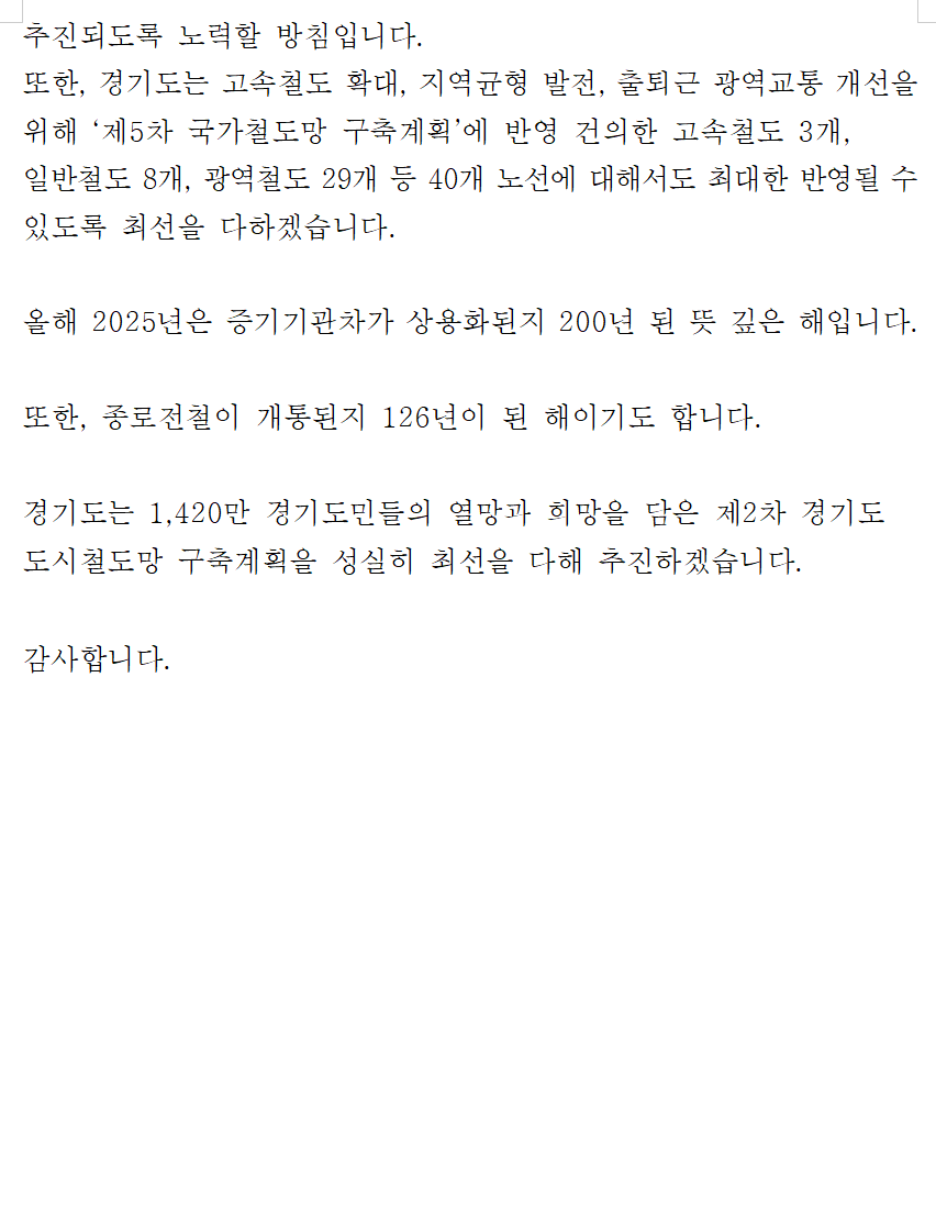 철도망 확충을 위해 지속적으로 노력하겠습니다.